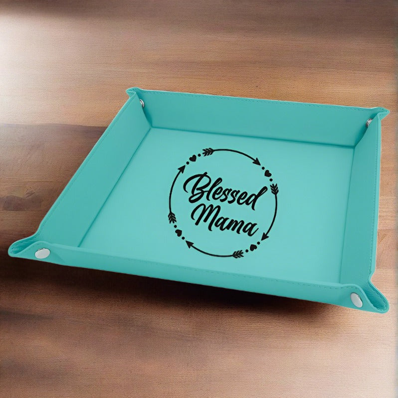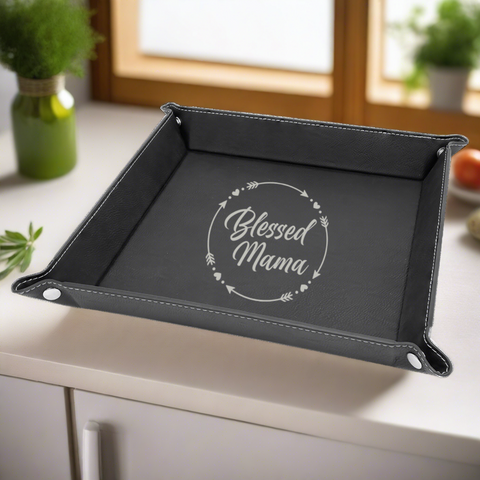 Blessed Mama Faux Leather Snap Up Tray